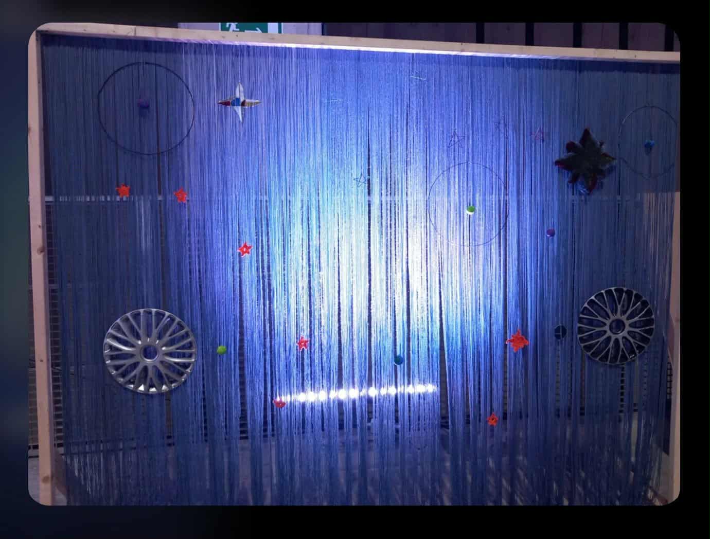 Hated every second of it, 3 by 3 meters wooden frame. Wood because the school had a stock of it (so to me it was free) I nailed two sides of the frame evenly, 2 nails per centimeters. The frame broke WHILE i was building it 4 days before the exposition (a 2 months long expo).